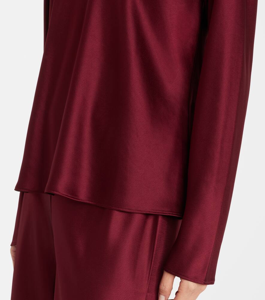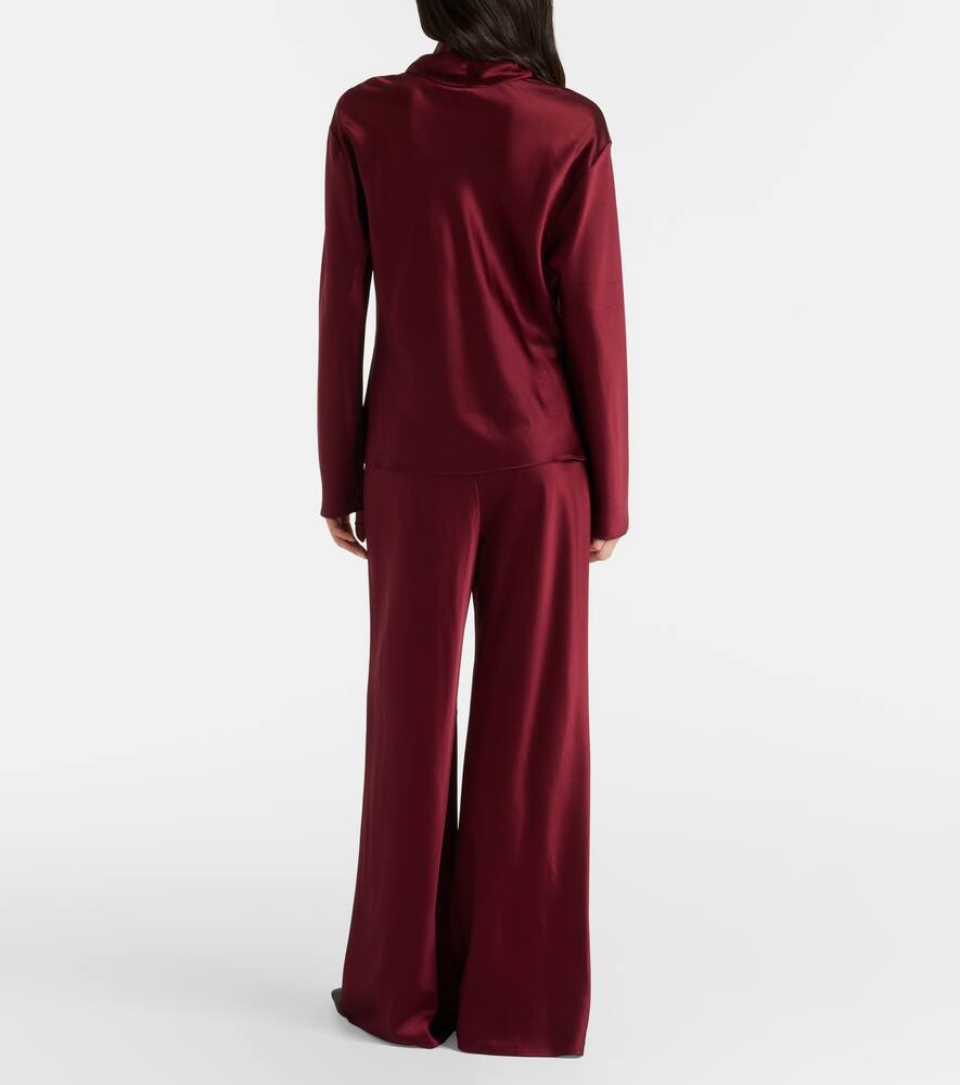 Leset переосмысливает современный гардероб, сочетая универсальные, изысканные базовые модели и сезонные хиты, идеально подходящие как для повседневной носки, так и для вечернего гардероба. Топ Barb из бордового атласа дополняется драпированной водолазкой и длинными рукавами.