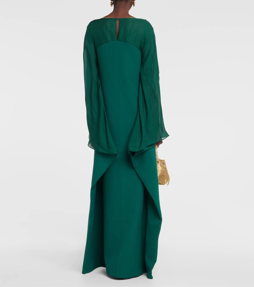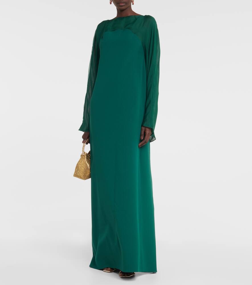 Это изделие выполнено из фирменного плотного крепа Сафии – ткани, ценимой за изящную драпировку. Этот кафтан имеет панельный силуэт, изящные длинные рукава и шелковую отделку.