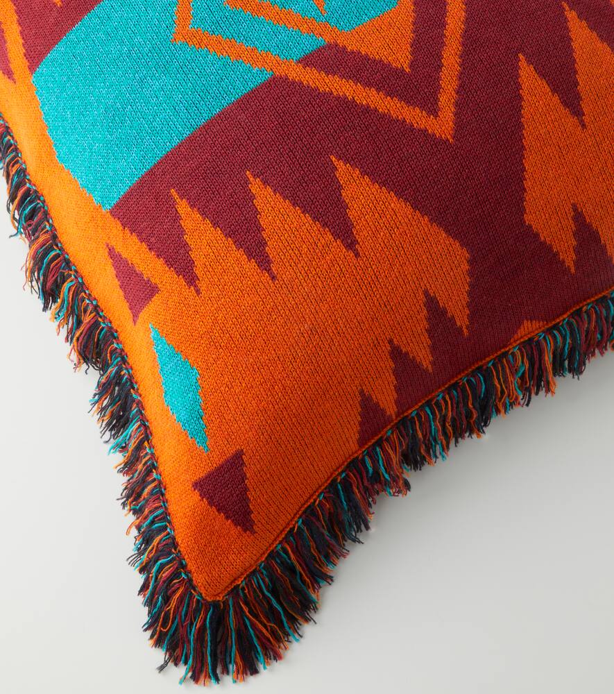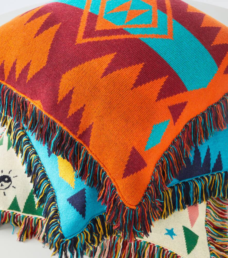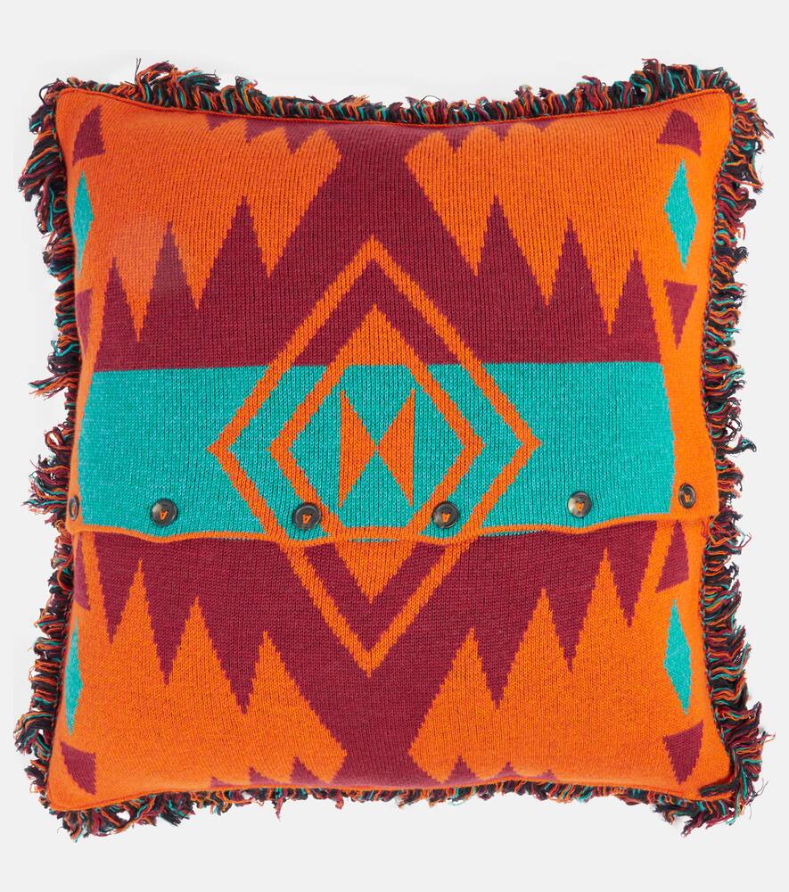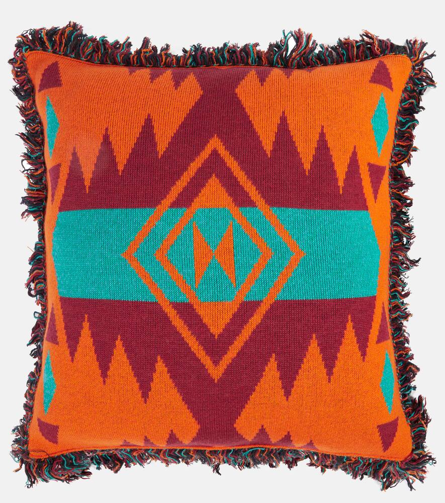 Подушка от Alanui Home, изготовленная в Италии из шерстяной пряжи, отличается привлекательным жаккардовым узором в разноцветном исполнении.