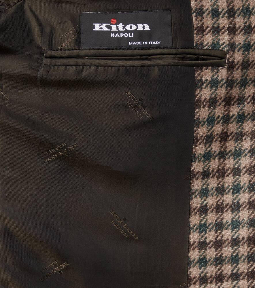 Пиджак из шерсти, шелка и льна в клетку Kiton, Brown 330 714₽
