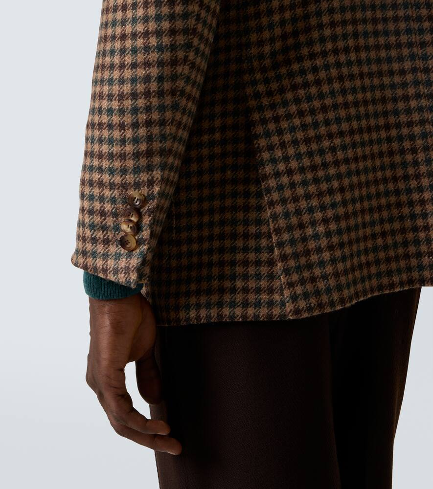 Пиджак из шерсти, шелка и льна в клетку Kiton, Brown
