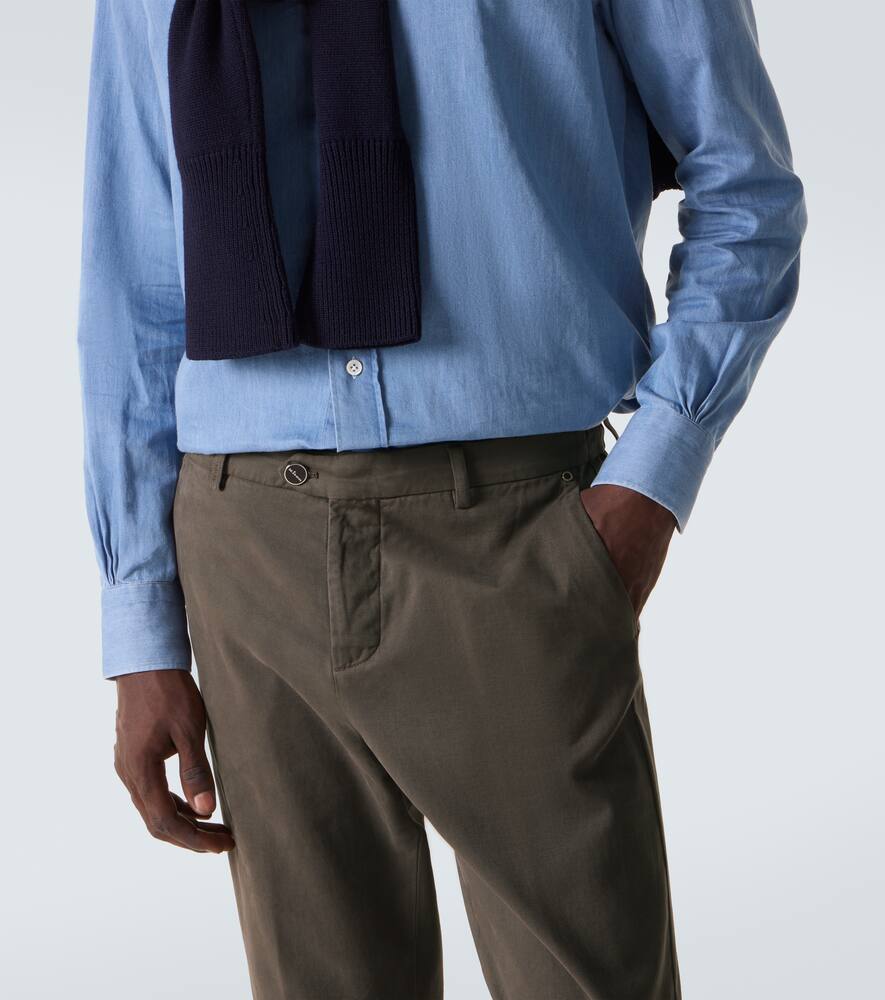 Kiton находит идеальный баланс между элегантностью, безупречным качеством и непринужденным комфортом. Эти брюки-чиносы из хлопка и кашемира отличаются облегающим силуэтом.