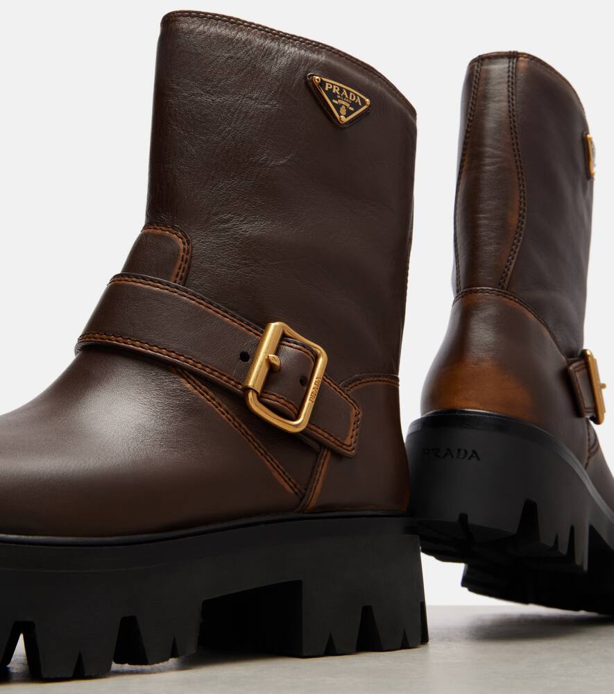 Кожаные мотоциклетные ботинки с логотипом Prada, Brown