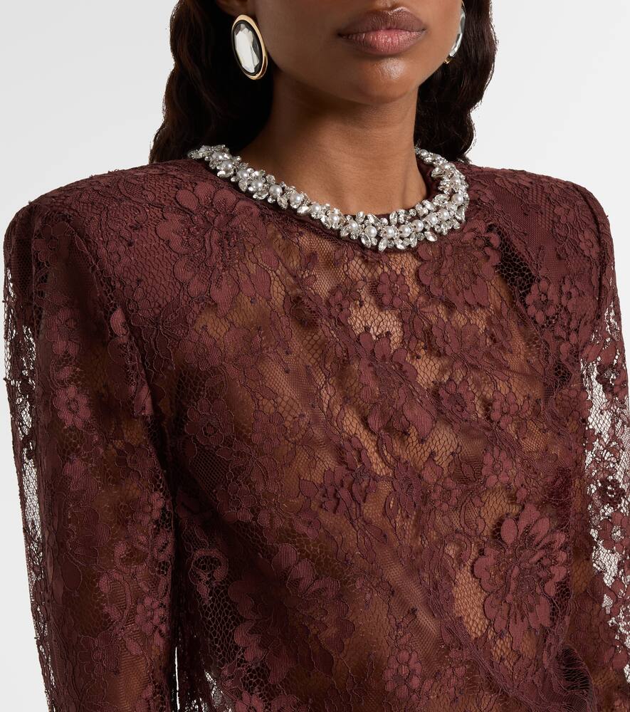 Топ с кружевной отделкой Self-Portrait, Brown
