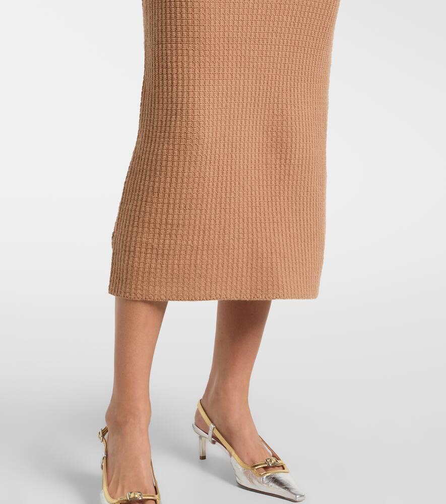 Платье миди с баской из вафельной ткани Self-Portrait, Brown