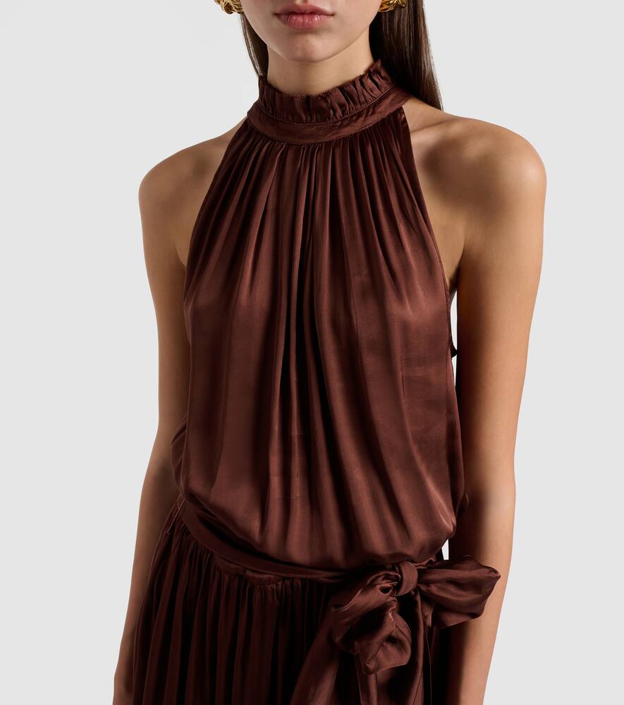Платье макси Nina на бретелях из сатина Poupette St Barth, Brown 26 Plain 49 743₽