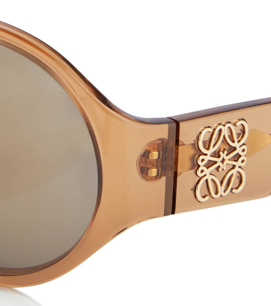 Нестандартный подход LOEWE к формам находит свое отражение в таких моделях, как эти коричневые солнцезащитные очки, представляющие собой уникальную интерпретацию классической круглой оправы. Эти большие очки из полупрозрачного ацетата оснащены тонированными линзами в тон, а широкие заушники украшены золотистым логотипом бренда Anagram. Обратите внимание: цвет защитного чехла может отличаться.