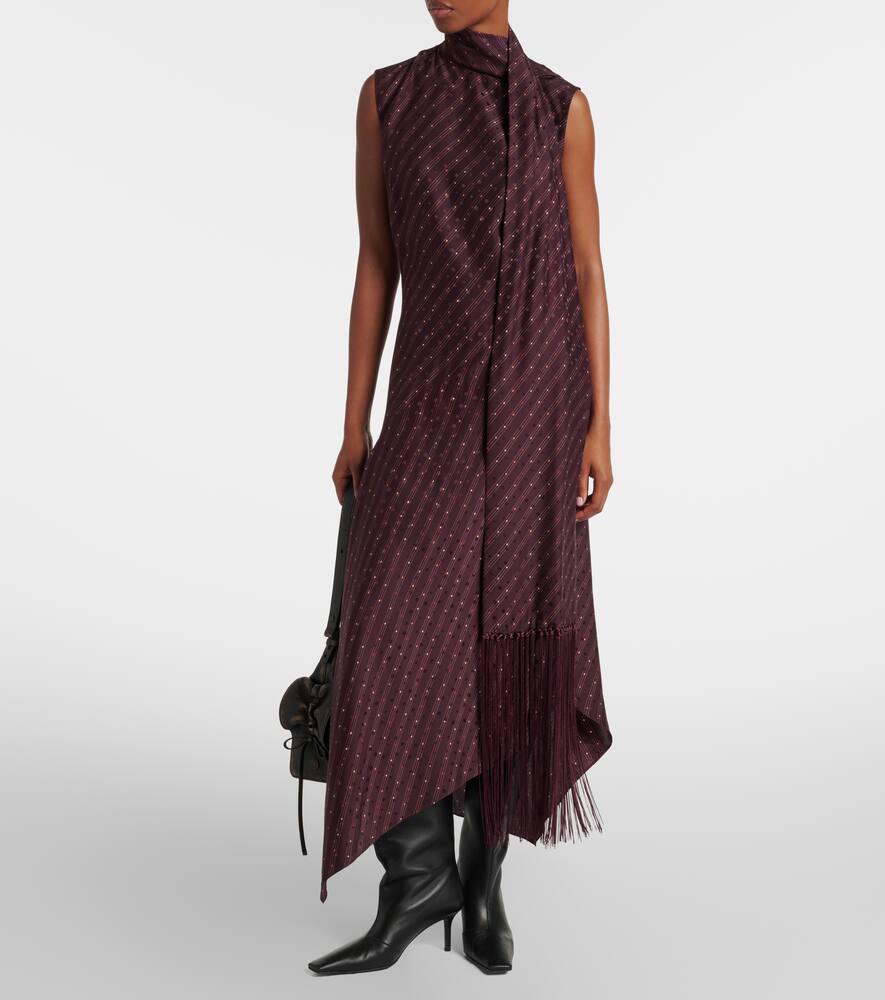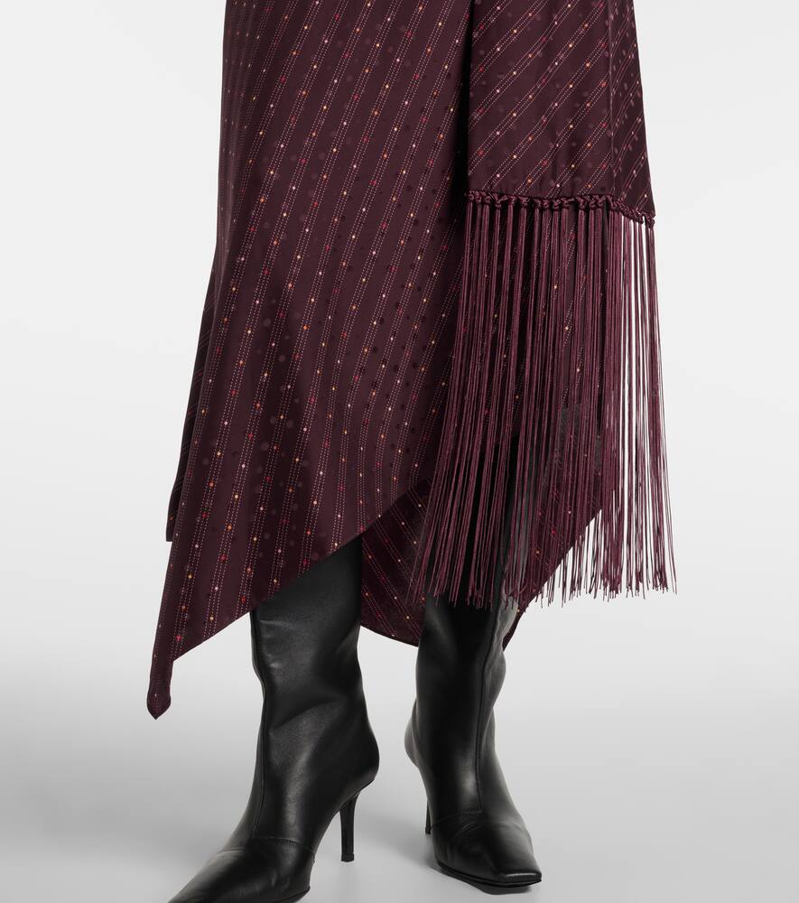 Асимметрильное платье миди из шелка с бахромой Acne Studios, Burgundy 124 329₽