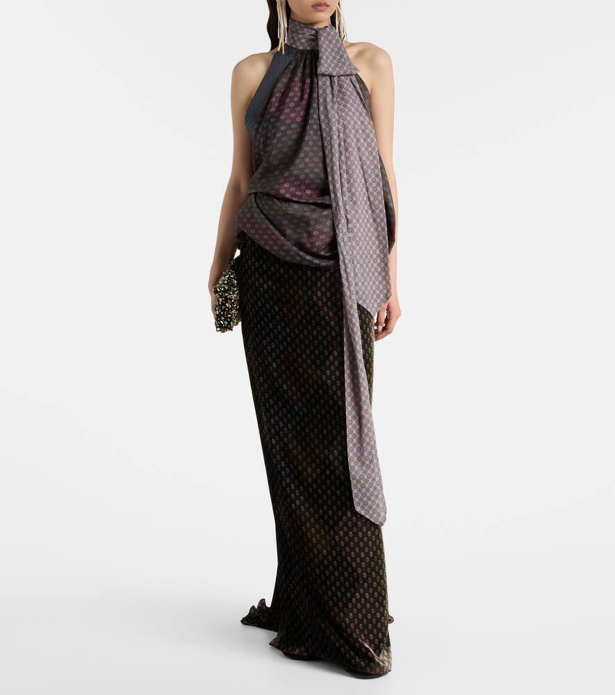 Принты Дриса Ван Нотена часто абстрактны, откровенно максималистичны и всегда уникальны. Этот топ, выполненный из шёлка, имеет сборку спереди и завязку-халтер на шее.