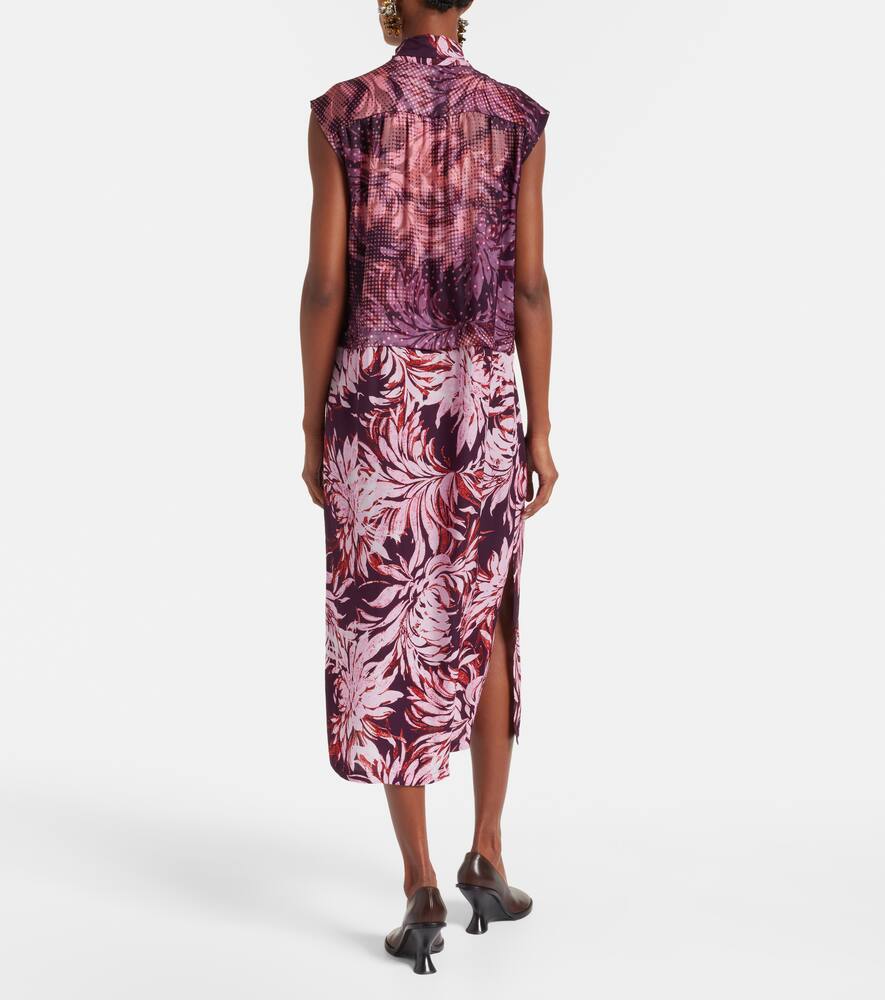 Платье миди с принтом и завязкой на шее Dries Van Noten, Burgundy
