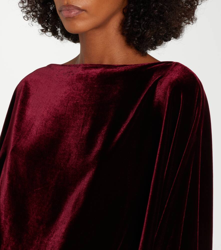 Платье Musidora от Taller Marmo – воплощение изысканности, идеально подходящее для сезонных мероприятий. Оно выполнено из роскошного бархата с вырезом лодочка и струящейся драпировкой на лифе.