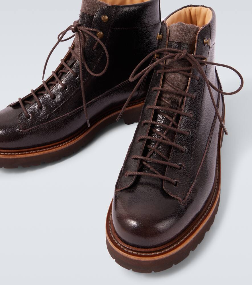 Эти ботинки Brunello Cucinelli отличаются искусной конструкцией и изысканным дизайном. Они изготовлены из зернистой телячьей кожи, имеют шнуровку, закруглённый носок и прочную резиновую подошву.
