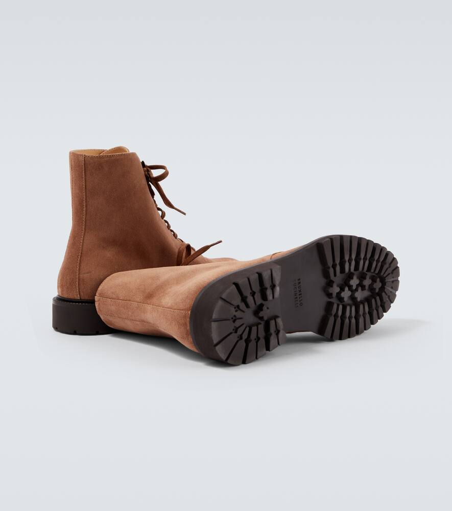 Эти ботильоны из гладкой замши от Brunello Cucinelli – воплощение изысканного итальянского мастерства. Эта изысканная пара с классическим круглым носком и шнуровкой сочетает в себе классический стиль и утонченную элегантность.
