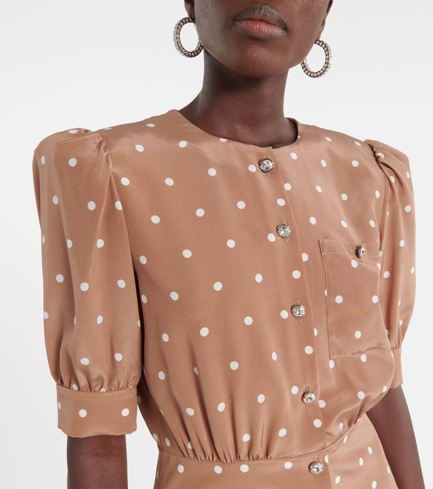 Плиссированное мини-платье из шелка в горошек Alessandra Rich, Camel-White
