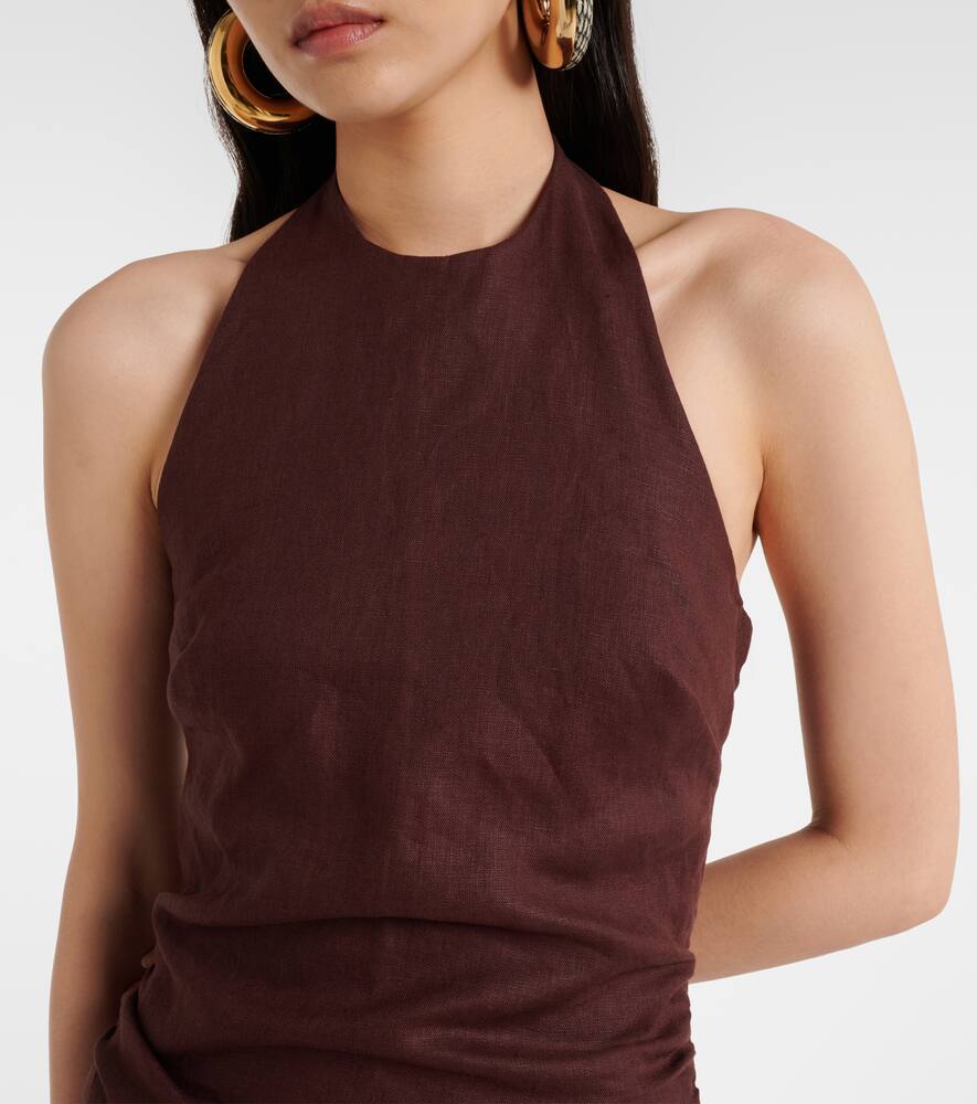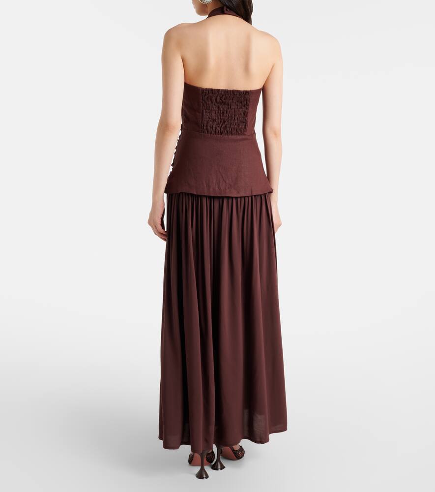 Талия с бретелями халтер лен макси платье Faithfull, Carob 46 438₽