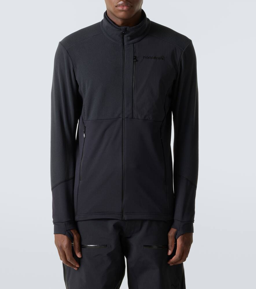 Флисовая куртка Lofoten от Norrøna — тёплый слой для активного отдыха при низких температурах. Изделие изготовлено из дышащей, водонепроницаемой ткани, имеет застёжку-молнию спереди, высокий воротник и регулируемые манжеты.