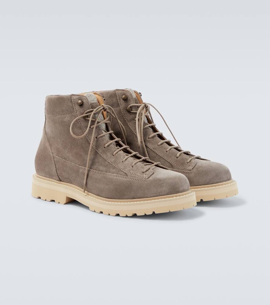 Эти ботильоны от Brunello Cucinelli сочетают в себе городской стиль, функциональность и комфорт. Изготовленные из бархатистой замши, эти ботинки дополнены твидовыми язычками из шёлка, шерсти и кашемира, что придаёт им современный вид.