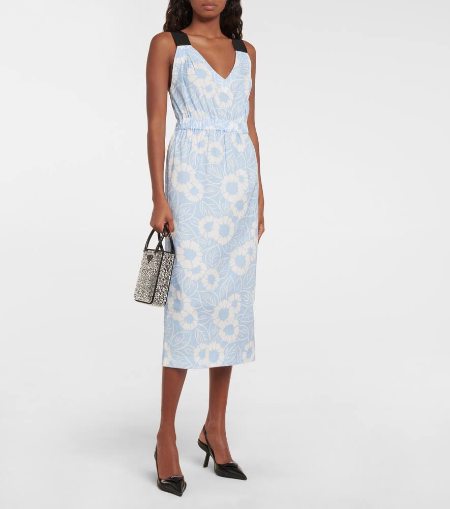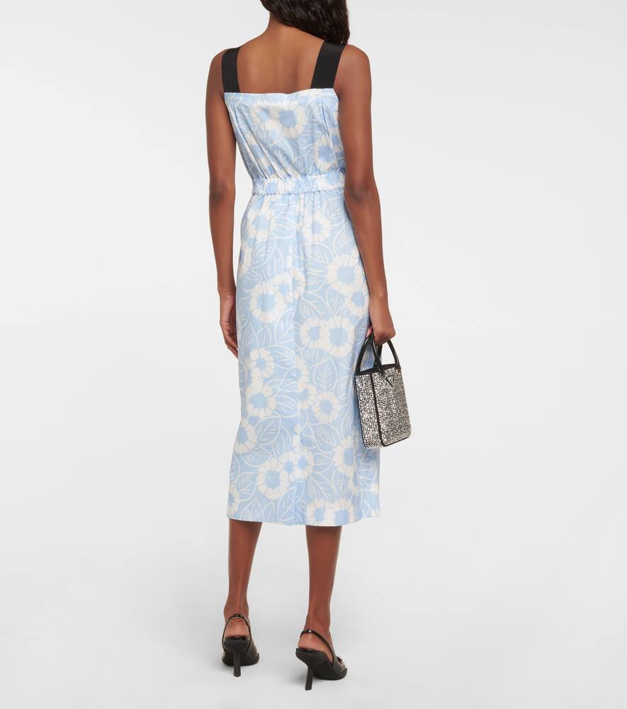 Цветочное миди-платье из хлопковой смеси Prada, Celeste