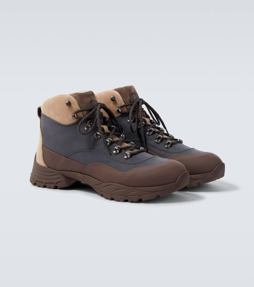 Модели Brunello Cucinelli создаются в Соломео, средневековой деревушке, где искусство и традиции вплетены в каждую клеточку дома. Эти ботильоны из кожи и ткани имеют круглый нос и шнуровку.
