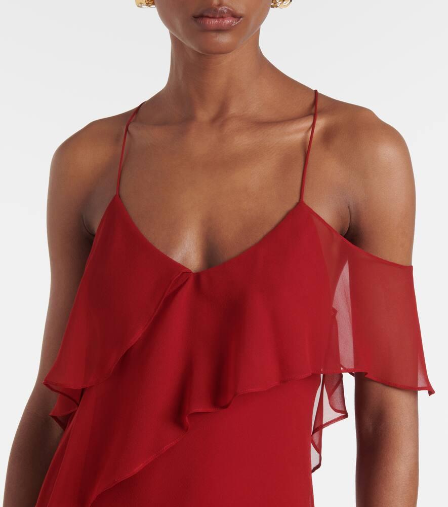 Платье из шелкового шифона с рюшами The Sei, Cherry