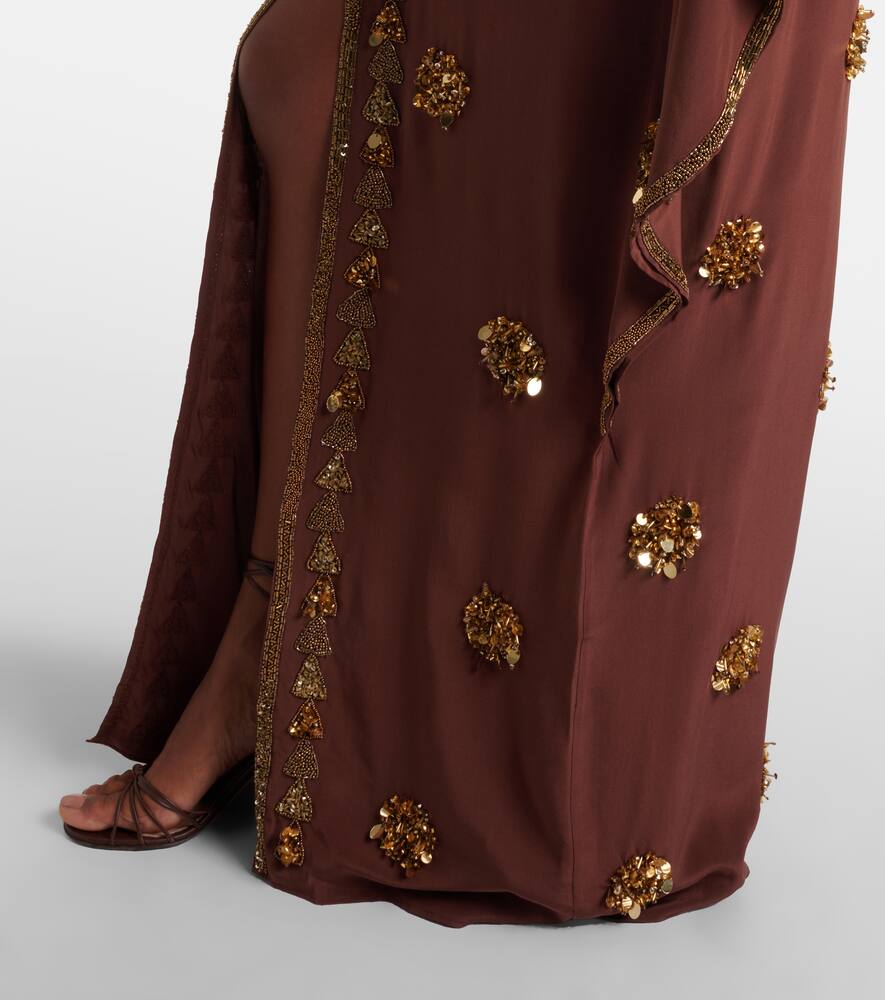 Мистический гаучо шелковый кафтан с декором Johanna Ortiz, Chocolate