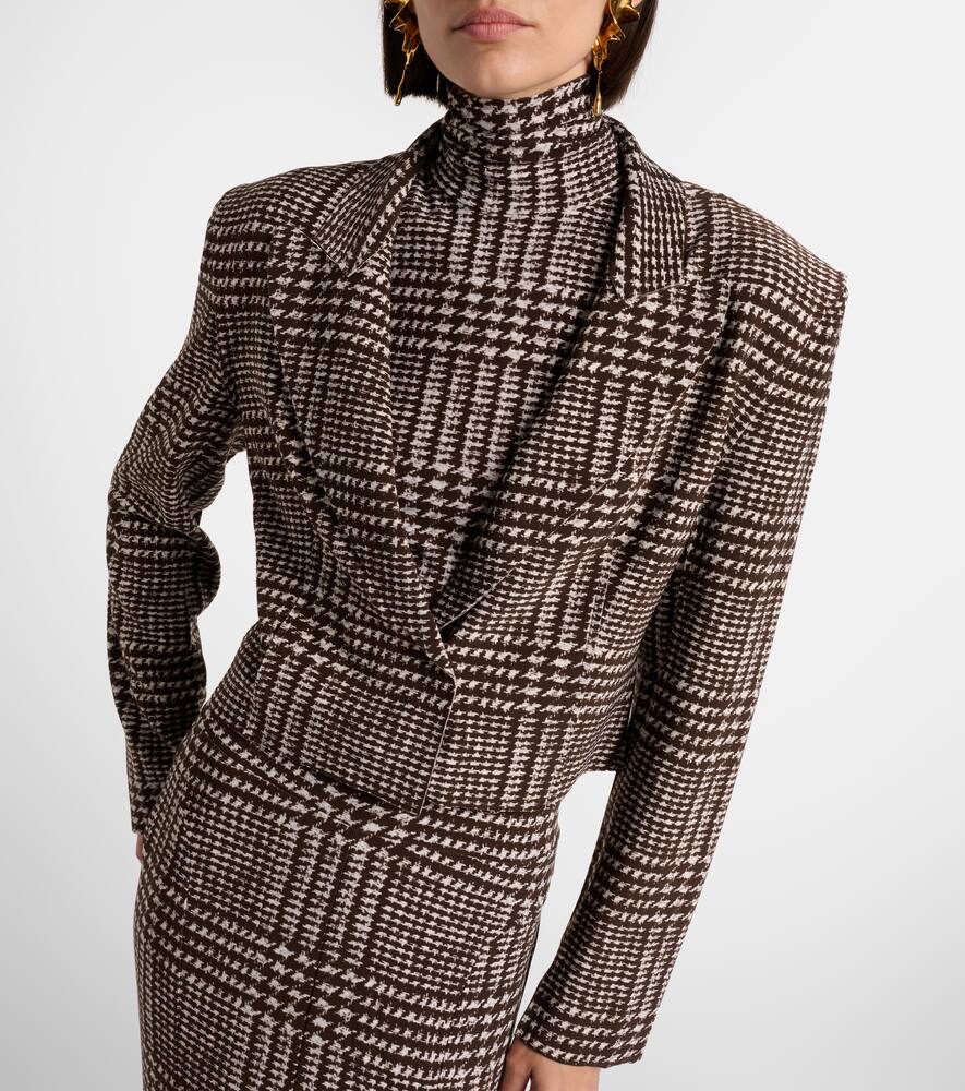Короткий пиджак в клетку houndstooth Norma Kamali, Chocolate Glenn Plaid