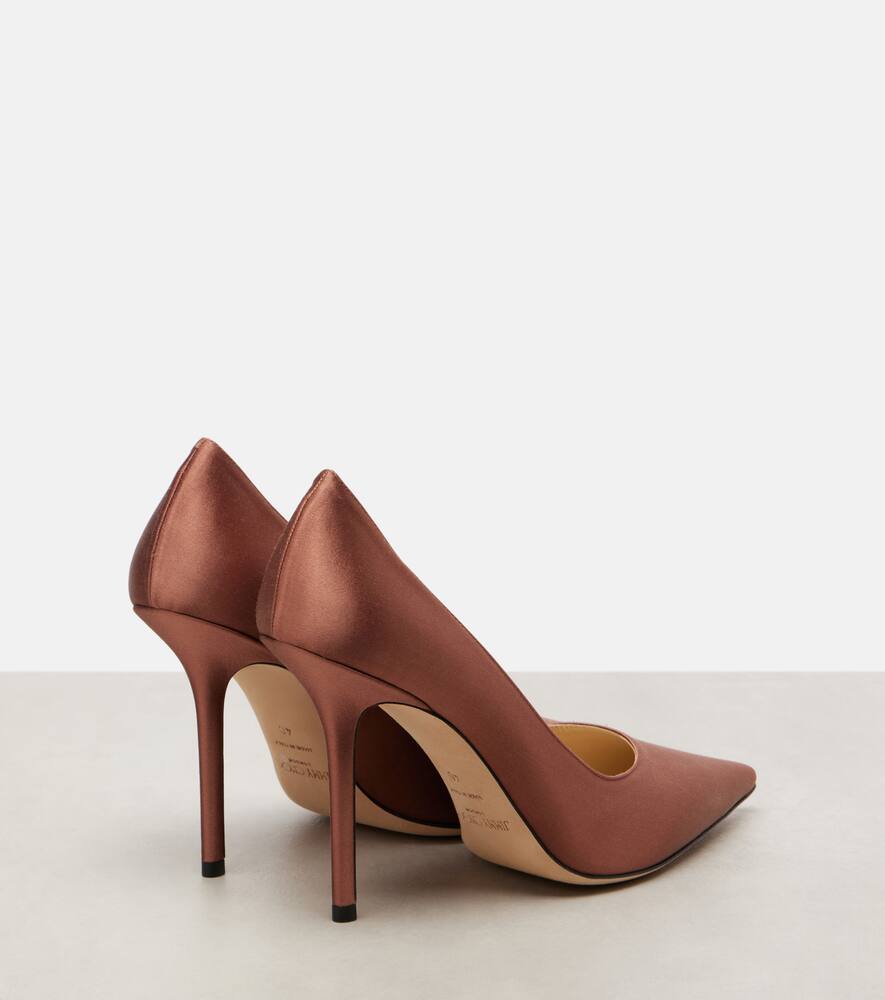 Jimmy Choo — это глобальный бренд люксовой моды, воплощающий гламур, оптимизм и радость. Туфли Love из атласа на шпильке высотой 100 мм имеют острый нос.
