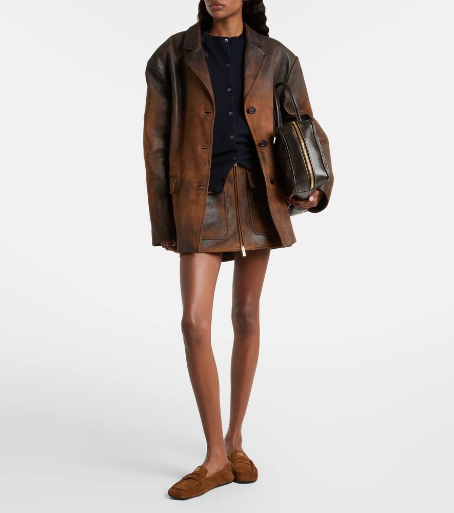 Эта мини-юбка воплощает бунтарский и беззаботный дух Miu Miu. Изделие выполнено из замши с вощёной отделкой в винтажном стиле, дополнено карманами с клапанами и застёжкой-молнией спереди.