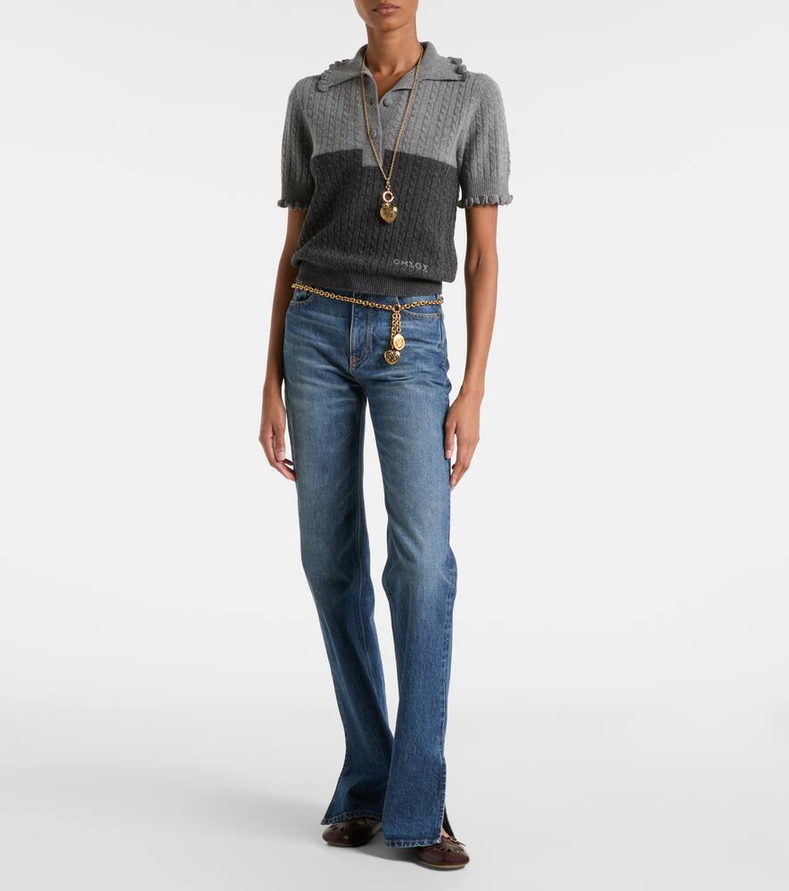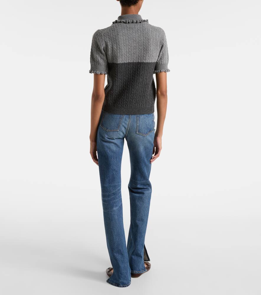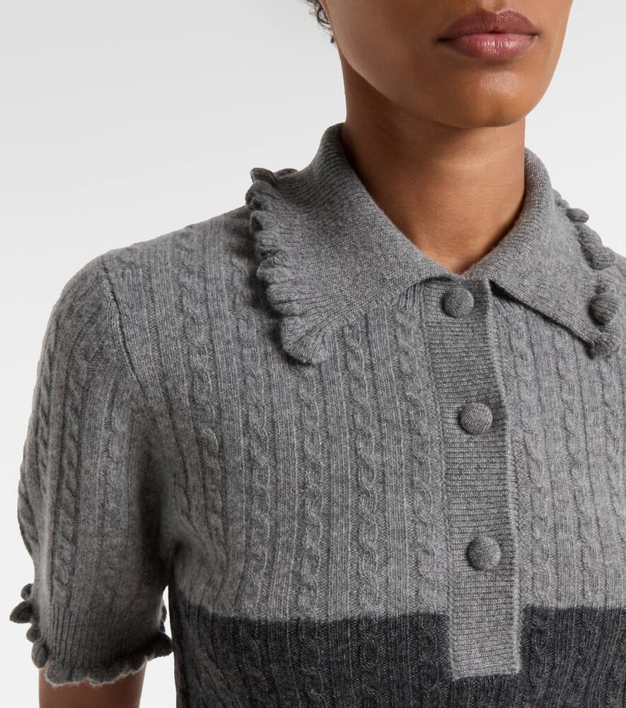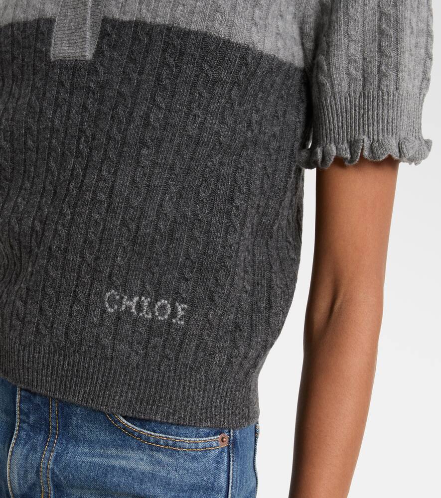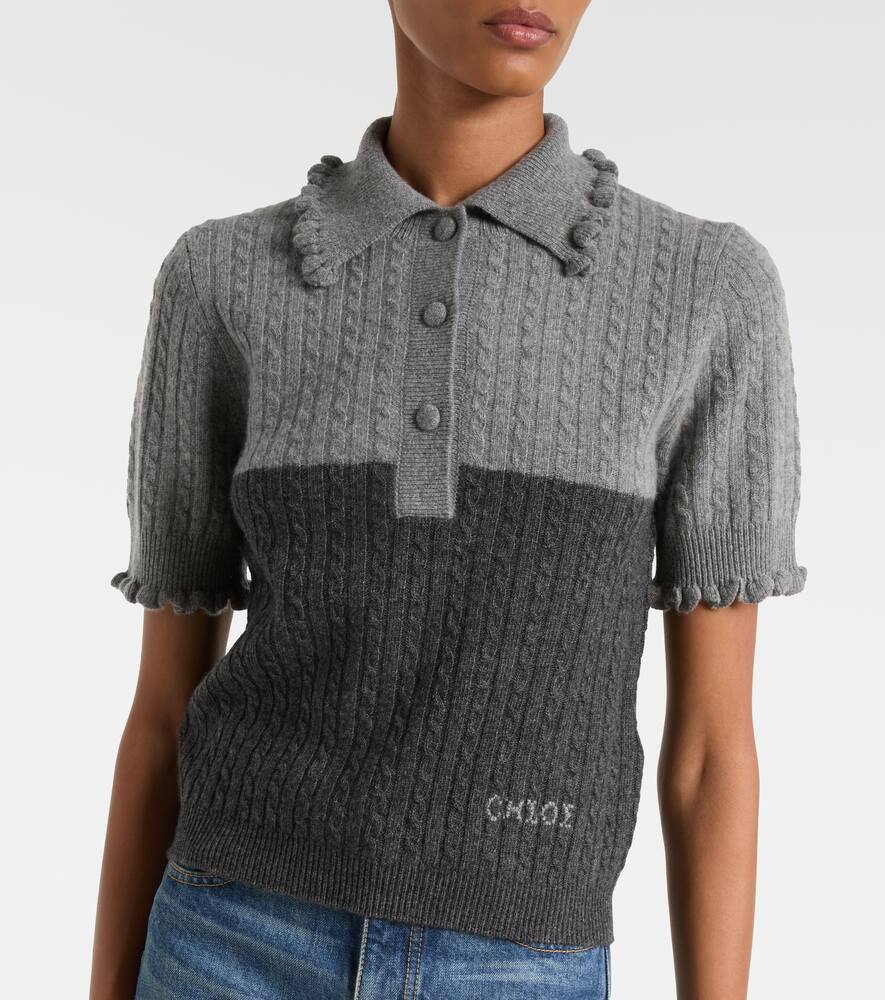 Вязаный поло из шерсти и кашемира с рюшами Chloé, Confident Grey