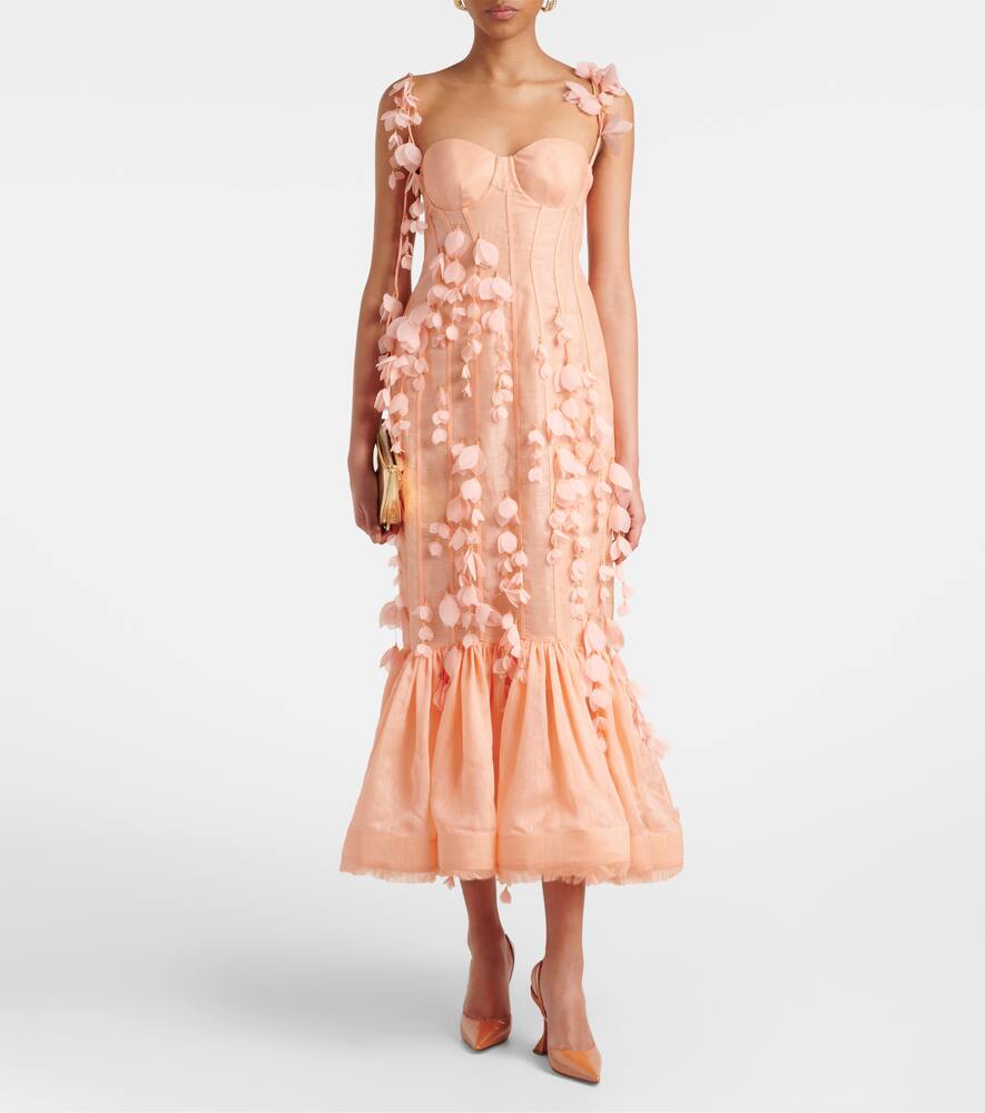 Платье миди из льна и шелка Dawning Zimmermann, Coral