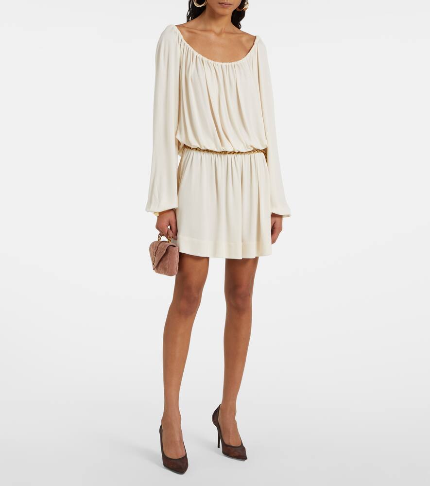 Мини-платье из джерси с рюшами Saint Laurent, Craie