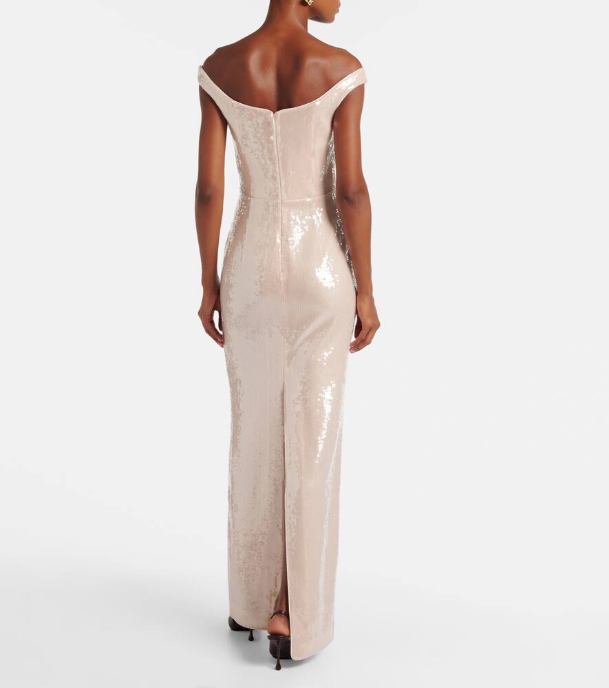 Уникальное понимание точного кроя отличает Roland Mouret, гармонично сочетая современную изысканность с непринужденностью. Это платье отличается силуэтом с открытыми плечами и полностью расшито пайетками.