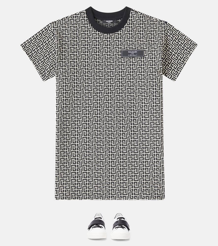 Хлопковое джерси платье Balmain Kids, Cream-Colour/Black