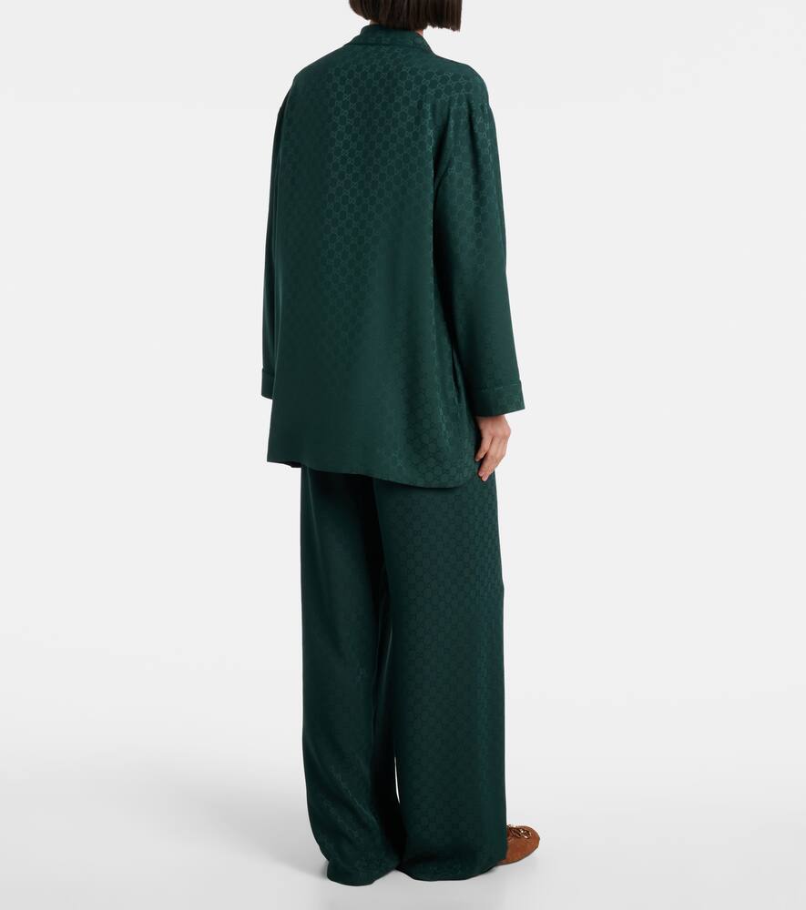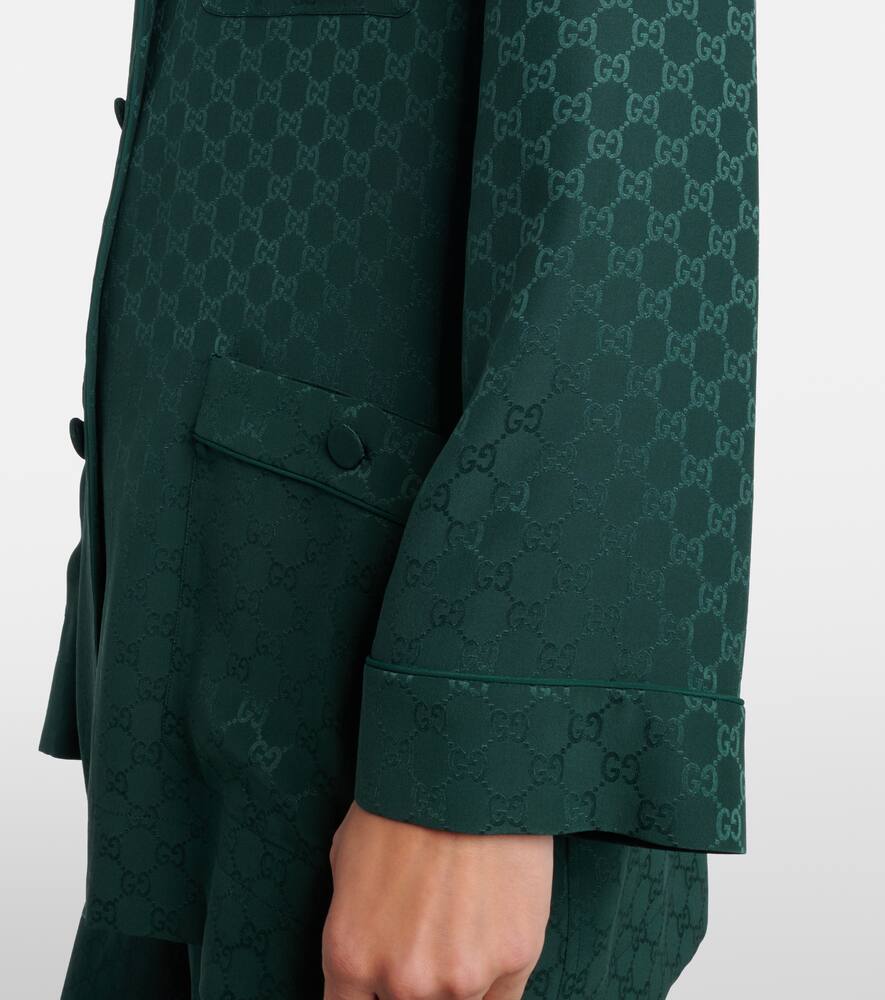 Эта рубашка Gucci из чистого шёлка имеет элегантный силуэт, создающий изысканный образ. Модель украшена принтом GG по всей длине, застёгивается на пуговицы спереди и имеет заострённые лацканы.