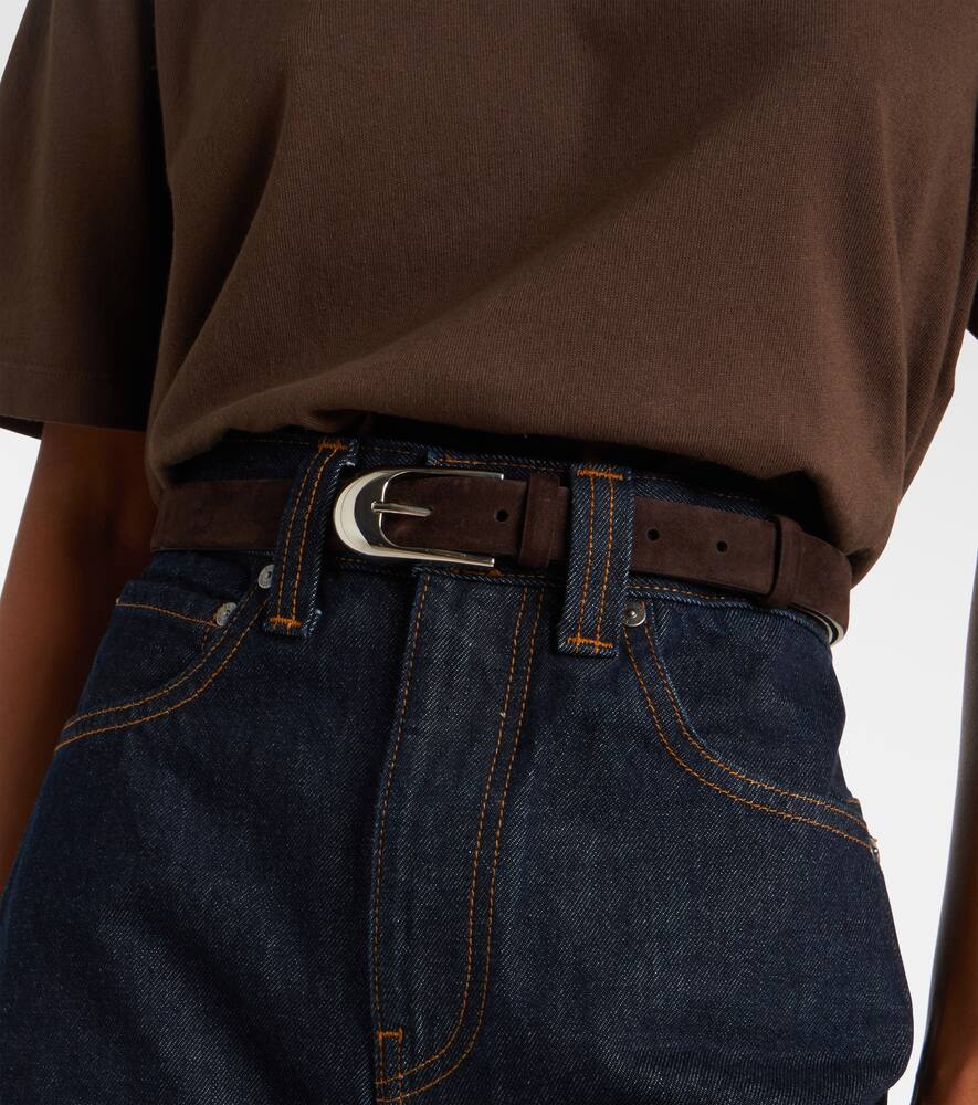 Минималистичный дизайн Khaite воплощает современную изысканность и непринужденную элегантность. Ремень Dome изготовлен в Италии из замши и застегивается на изысканную круглую пряжку.