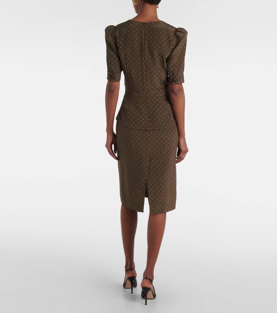 Платье миди из шёлка в горошек Alessandra Rich, Dark Green-Ivory 163 880₽