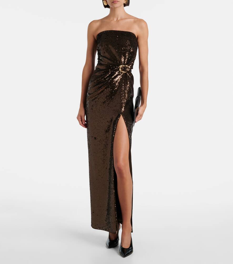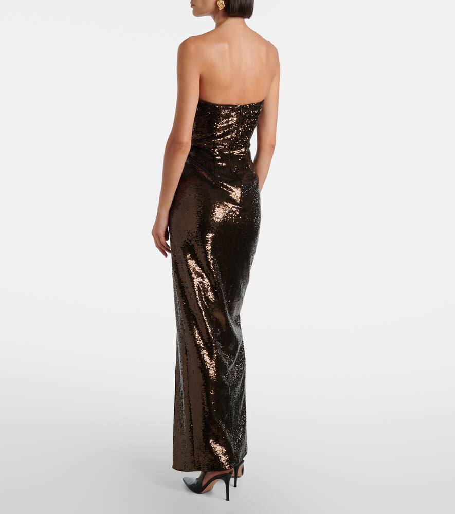 Уникальное понимание точного кроя отличает Roland Mouret, гармонично сочетая современную изысканность с непринужденностью. Это присборенное платье украшено сплошной отделкой пайетками и элегантным вырезом без бретелек.