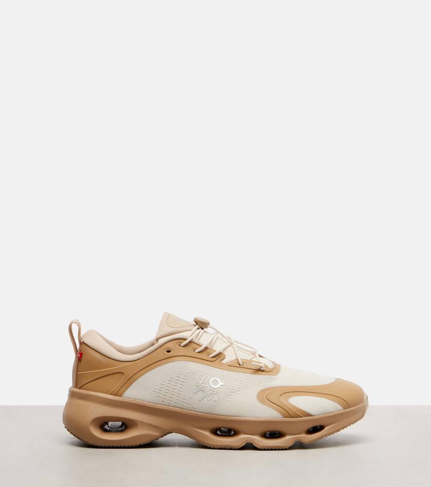 Кроссовки Loewe Cloud, созданные в сотрудничестве с On, оснащены системой быстрой шнуровки и перфорированной подошвой для оптимального сцепления. Кроссовки дополнены вышивкой, сочетающей логотип On и классическую анаграмму Loewe.