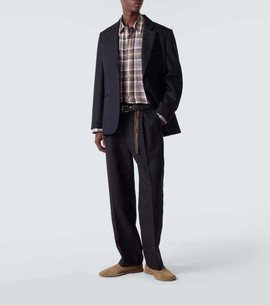 Студия Nicholson и Аарон Левин объединили усилия, чтобы создать коллекцию вневременных вещей. Брюки Selby изготовлены из шерсти с узором ёлочка и имеют прямой плиссированный силуэт.