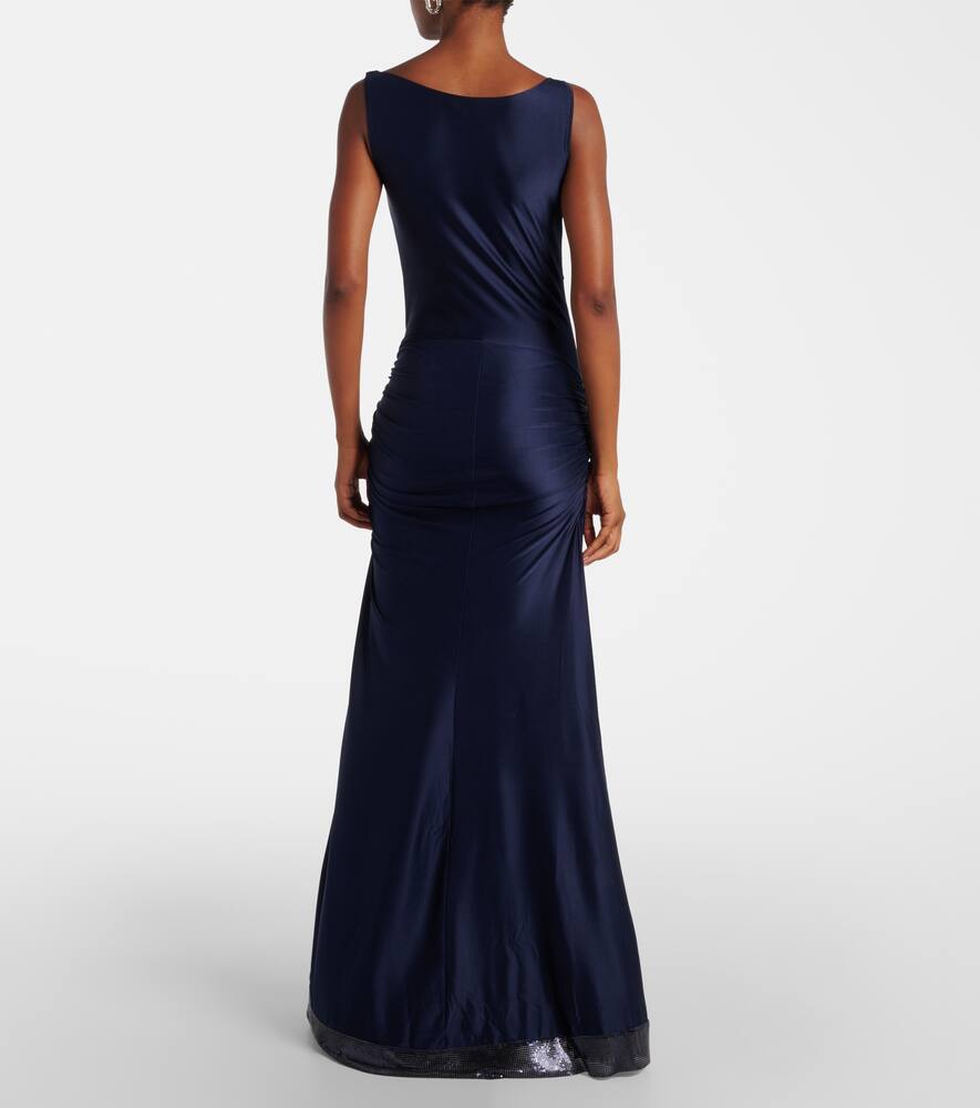 Платье макси из сатина с рюшами и декором Rabanne, Deep Navy 275 609₽