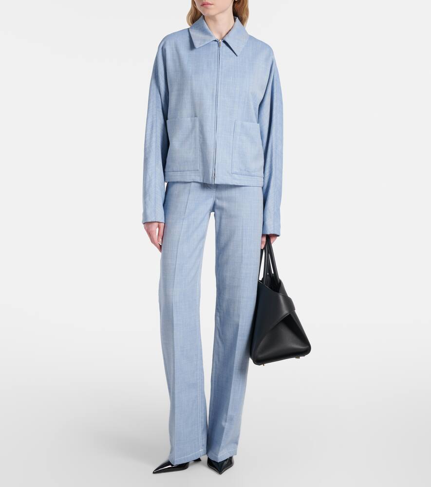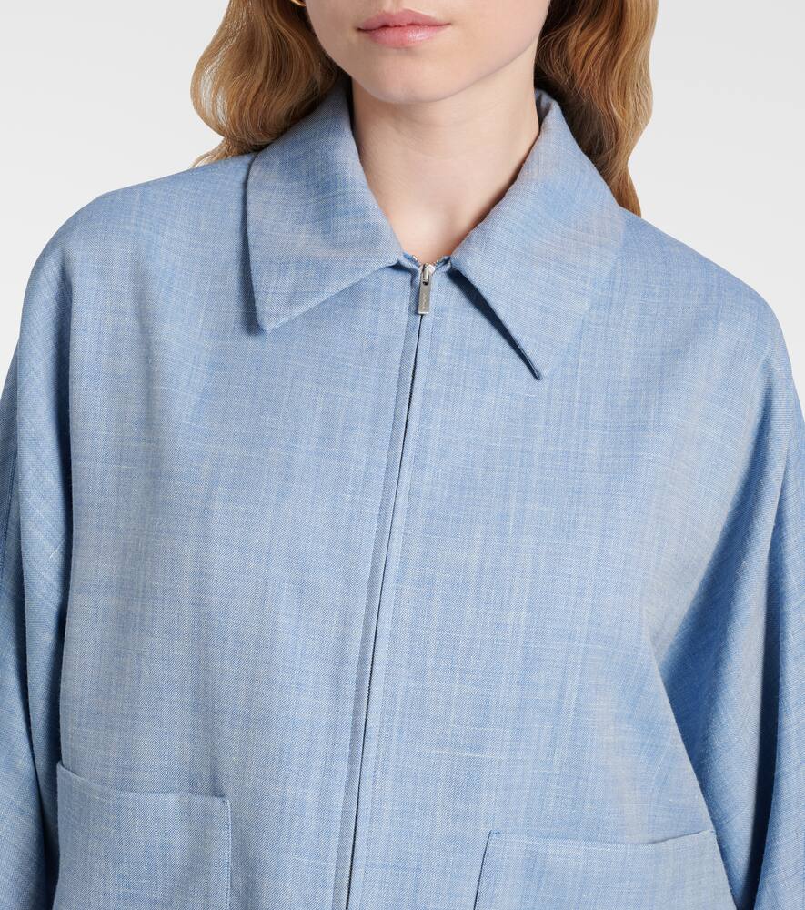 Кроп-блузон из шерсти, шелка и льна Ferragamo, Denim/White 124 876₽