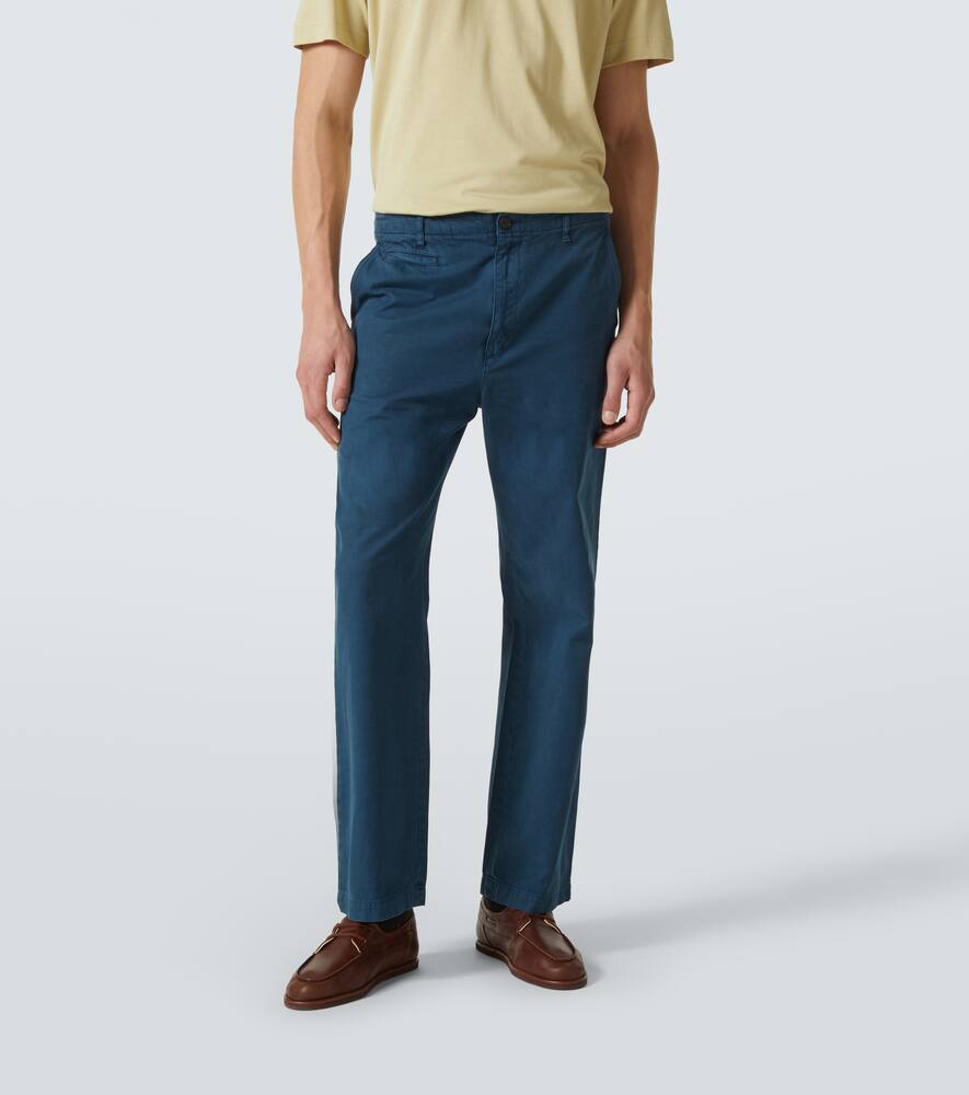Хлопковые габардиновые чиносы Auralee, Dyed Blue