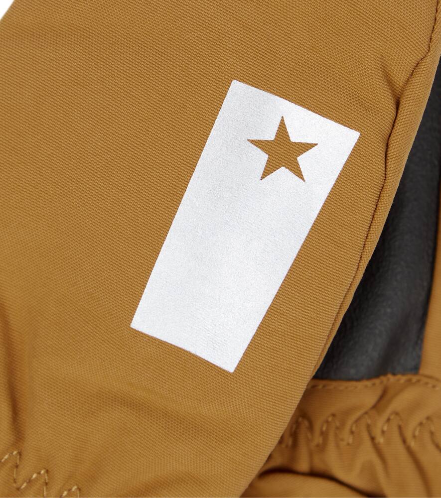 Варежки Igor от Molo специально разработаны для катания на лыжах. Они изготовлены из водонепроницаемого и дышащего нейлона с утепляющей подкладкой, запястьями с липучками VELCRO и светоотражающей лентой в форме звезды. Удлинённые манжеты гарантируют отсутствие открытого участка кожи между варежками и курткой.