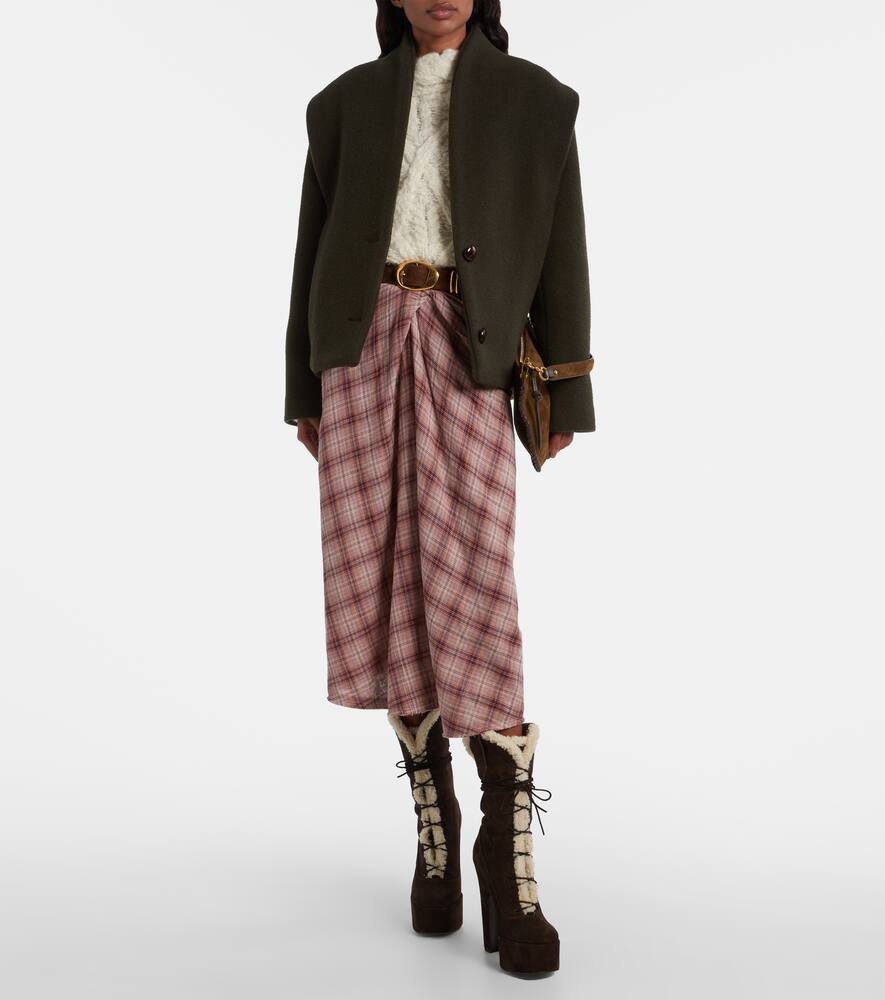 Paris Texas — итальянский обувной бренд, вдохновлённый современными женщинами со всего мира, воплощающий идею контрастов. Ботильоны Malena из коричневой замши с мягкой подкладкой из овчины — это пара до середины голени со шнуровкой, каблуком 145 мм и платформой.