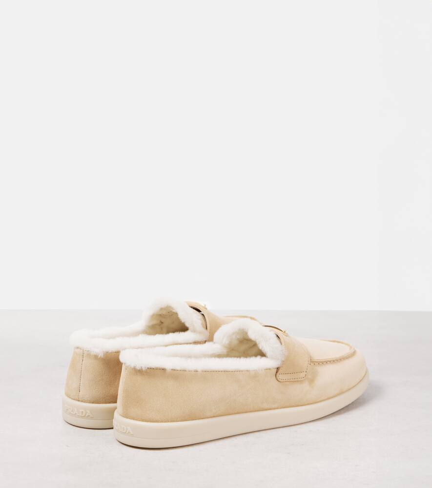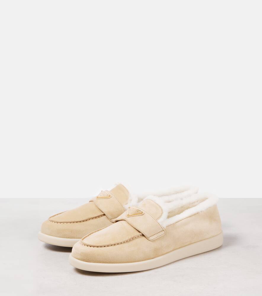 Замшевые лоферы с подкладкой из овчины Prada, Ecru'