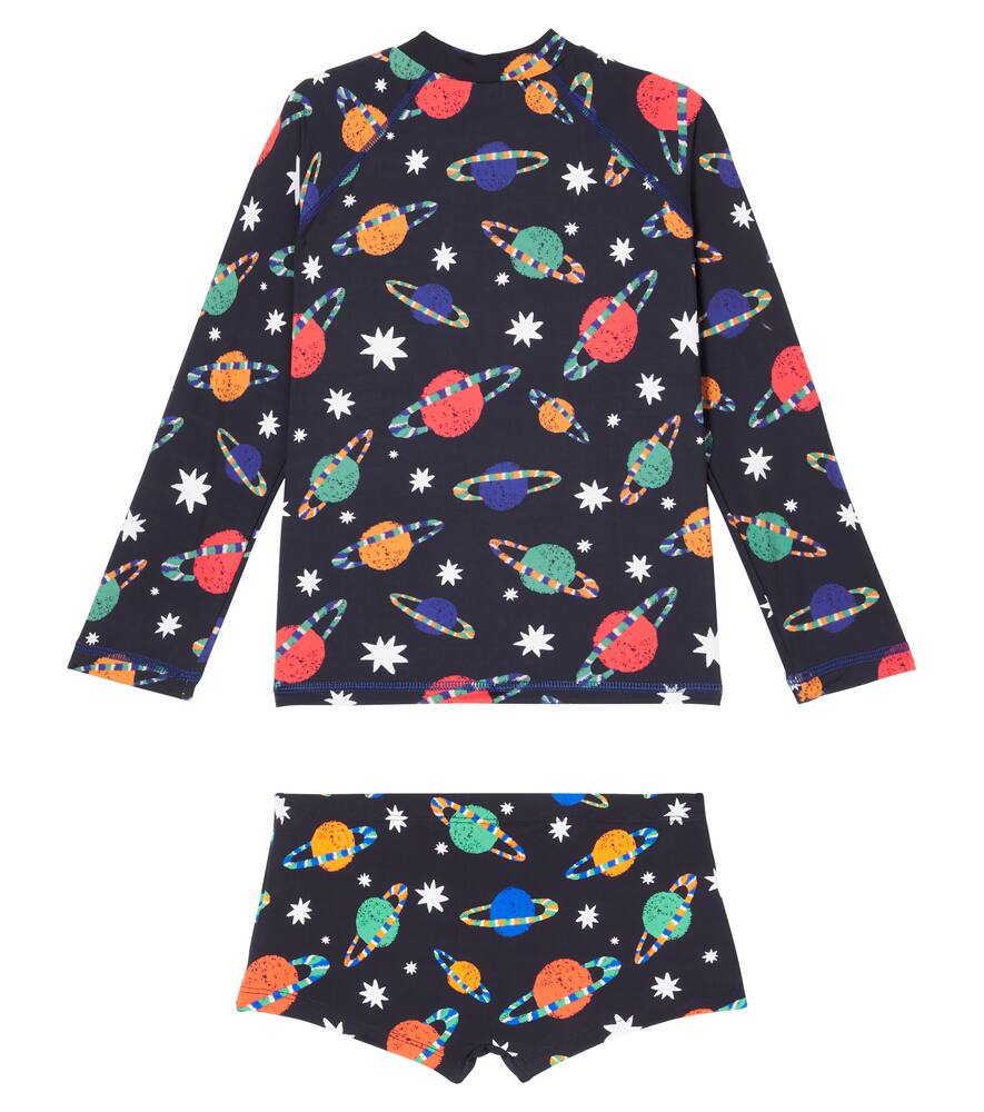 Набор с принтом: топ-рашгард и плавки Fábula, Est Planetonico Fundo Preto