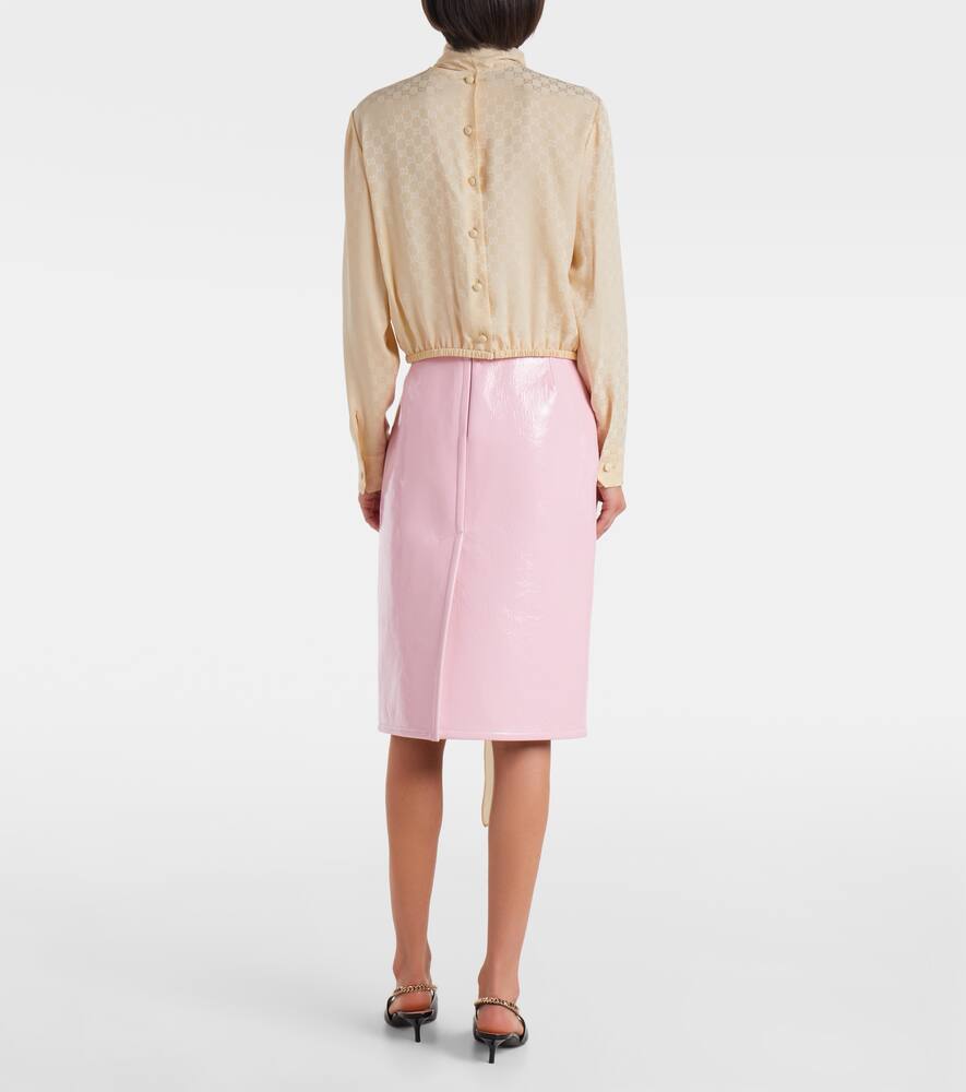Этот топ от Gucci из воздушного шёлка воплощает изысканное мастерство и элегантность бренда. Модель украшена большим бантом на воротнике и культовым узором GG по всей поверхности.