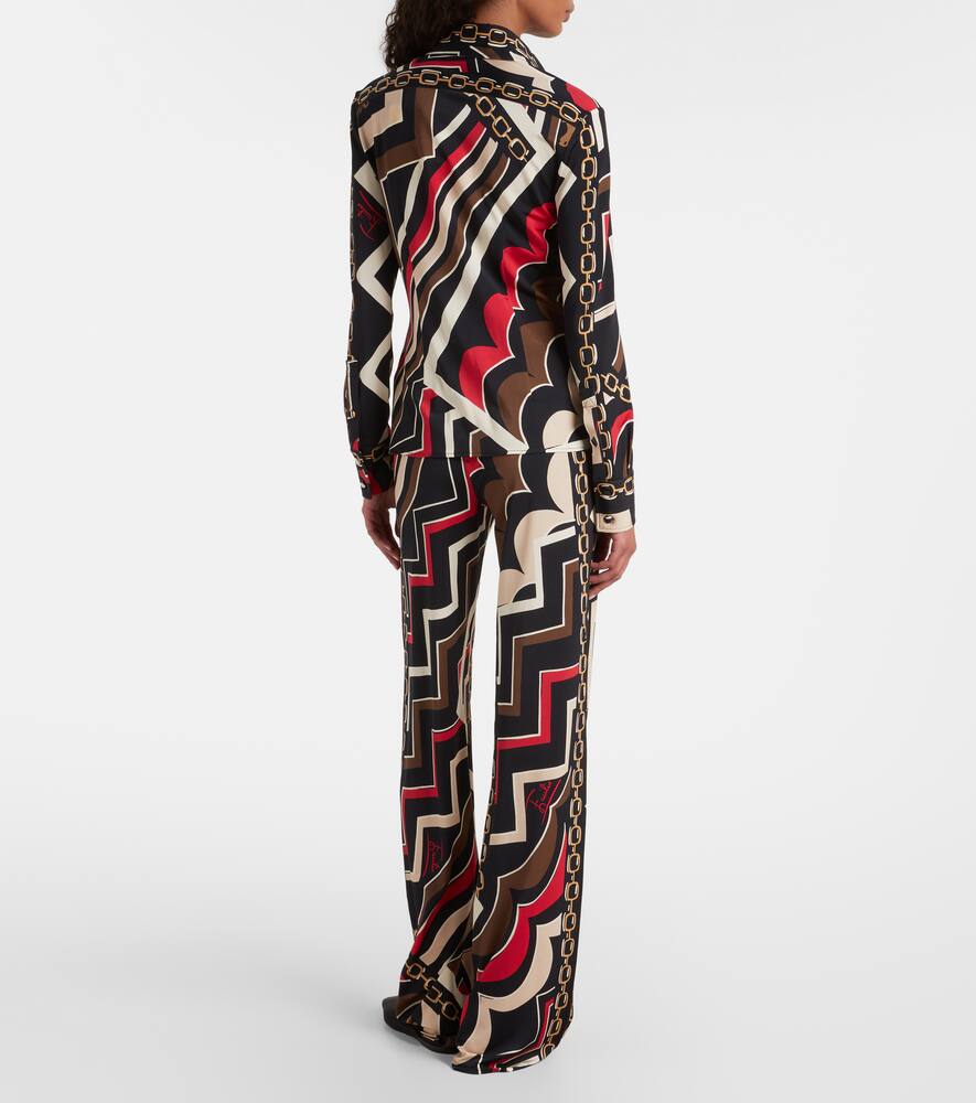 Культовый психоделический узор в виде завитков — фирменный знак бренда, благодаря которому Pucci получил титул Принца принтов. Эта рубашка с фирменным узором Istrice выполнена из блестящего атласного джерси и дополнена заостренным воротником.