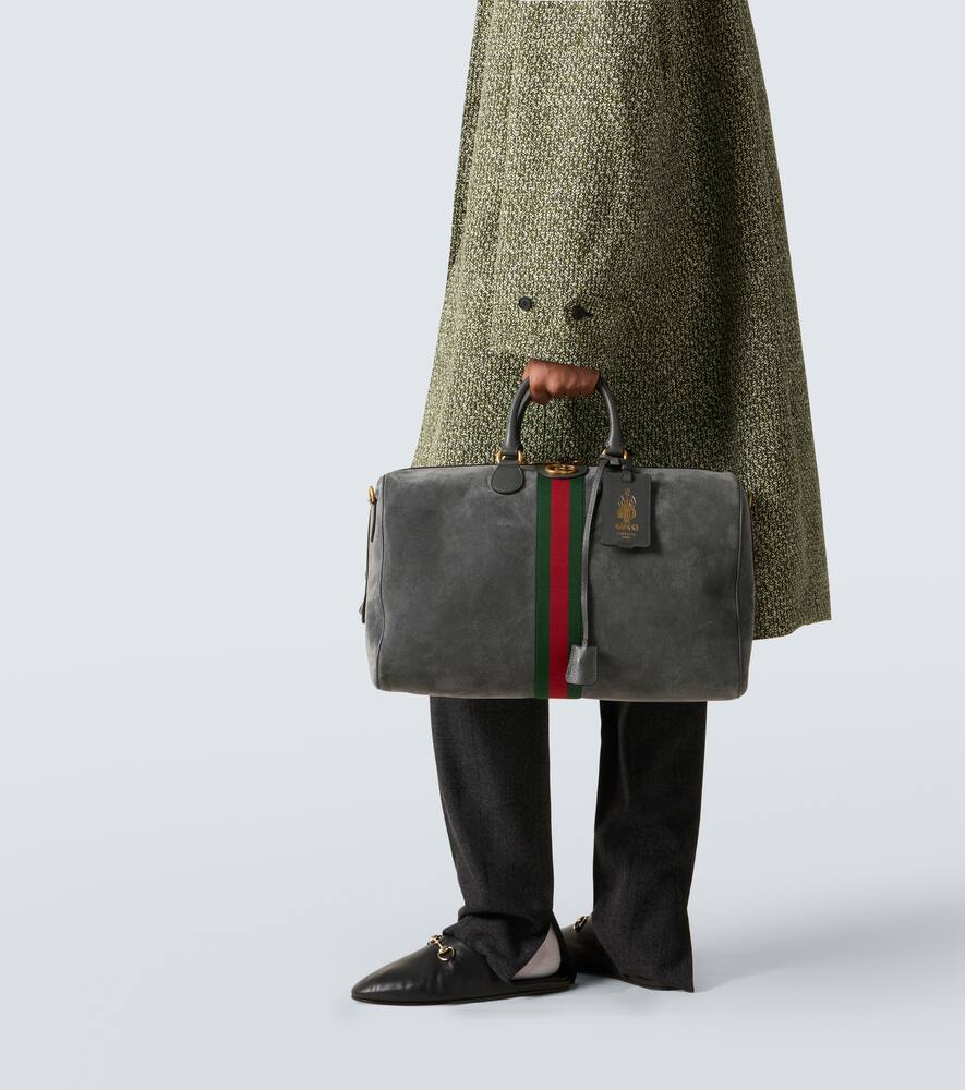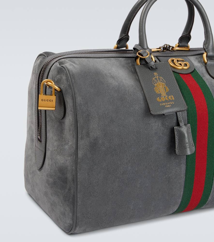 Дорожная сумка Gucci Savoy Medium из мягкой замши станет прекрасным дополнением к любому образу. Универсальный дизайн дополнен фирменными полосками Webstripe и двойной буквой G, а также съёмным плечевым ремнём для удобной переноски.