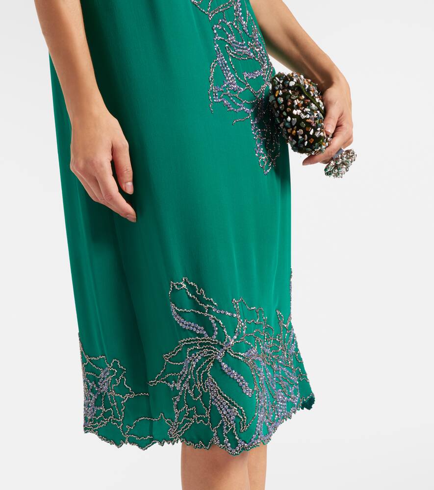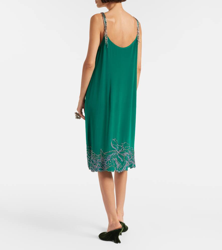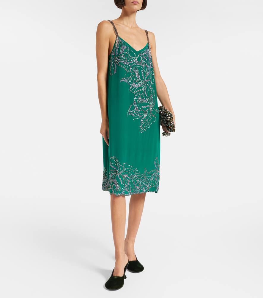 Шелковое платье-комбинация с бисером Dries Van Noten, Green